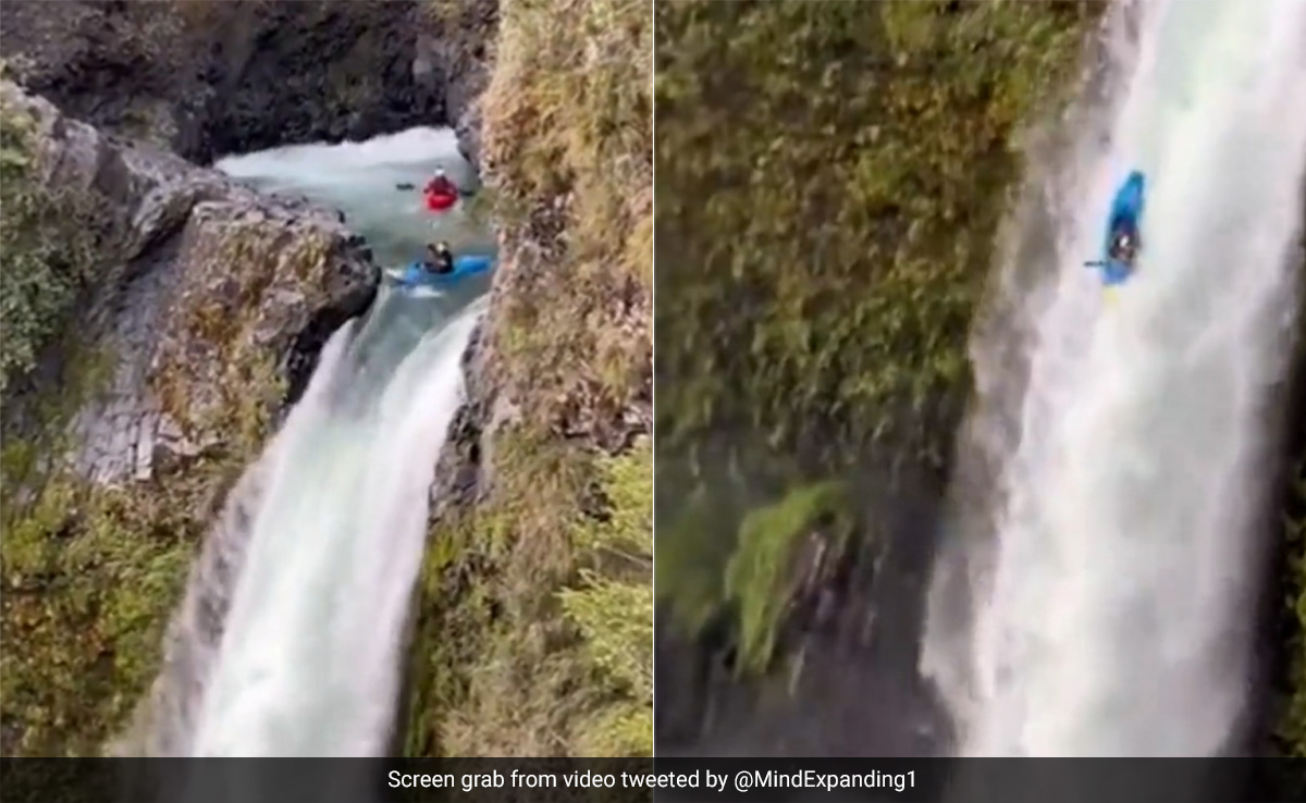 ट्विटर पर शेयर हुए इस वीडियो में पानी की तेज रफ्तार के बीच कुछ लोग करतब दिखाते नजर आते हैं. ऊंची पहाड़ी से झर-झर कर बहता पानी जिसे देख कर किसी को भी डर लगना लाजिमी है, पानी की इस तेज रफ्तार के बीच कुछ लोगों को बोट लेकर छलांग लगाते देखा गया. जब ये छोटी सी बोट तेज रफ्तार के साथ पानी में गिरती है, तो कुछ पल के लिए तो ऐसा लगता है कि शायद ये कभी नहीं लौटेगी, लेकिन फिर कुछ पलों के बाद नाव और उस पर सवार शख्स सही सलामत वापस आते हैं और उसी जोश से आगे बढ़ते हैं.