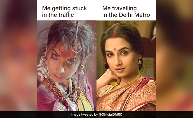 दिल्ली मेट्रो रेल कॉर्पोरेशन (DMRC) ने लोगों को मेट्रो के इस्तेमाल करने की ओर प्रेरित करने के लिए एक मजेदार ट्वीट किया है. इसमें डीएमआरसी ने विद्या बालन की दो तस्वीरें शेयर कीं हैं. इनमें से एक भूल भुलैया फिल्म की मंजुलिका की है और दूसरी में परिणीता फिल्म वाली ललिता. फोटो शेयर करते हुए डीएमआरसी ने लिखा, 'जाम में फंसने के बाद हम सब हॉरर फिल्मों के पात्रों जैसे हो जाते हैं. शांत रहिए और दिल्ली मेट्रो का इस्तेमाल कीजिए.' अब दिल्ली मेट्रो का ये ट्वीट काफी वायरल है. आप भी देखिए दिल्ली मेट्रो का ये ट्वीट...