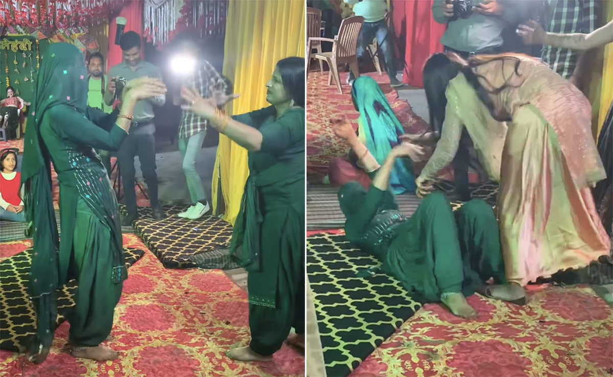 इस मजेदार वायरल वीडियो में एक महिला गदर मचाती नजर आ रही हैं. वीडियो को देखकर अंदाजा लगाया जा सकता है कि, ये किसी की मेंहदी की रस्म के बीच शूट किया गया है, जो अब इंटरनेट पर हर किसी का ध्यान अपनी ओर खींच रहा है. बैकग्राउंड में 'मैं नागिन तू सपेरा' गाना बज रहा है, जिस पर एक साथ कई महिलाएं जबरदस्त तरीके से डांस करती नजर आ रही हैं. इन्हीं में से अचानक एक देसी भाभी जोश में आ जाती हैं और उसके बाद वह ठुमके लगाते हुए नागिन सी बलखाने लगती हैं. वीडियो में देखा जा सकता है कि, घूंघट ओढ़े महिला फर्श पर लेट-लेटकर गजब का डांस कर रही हैं.
