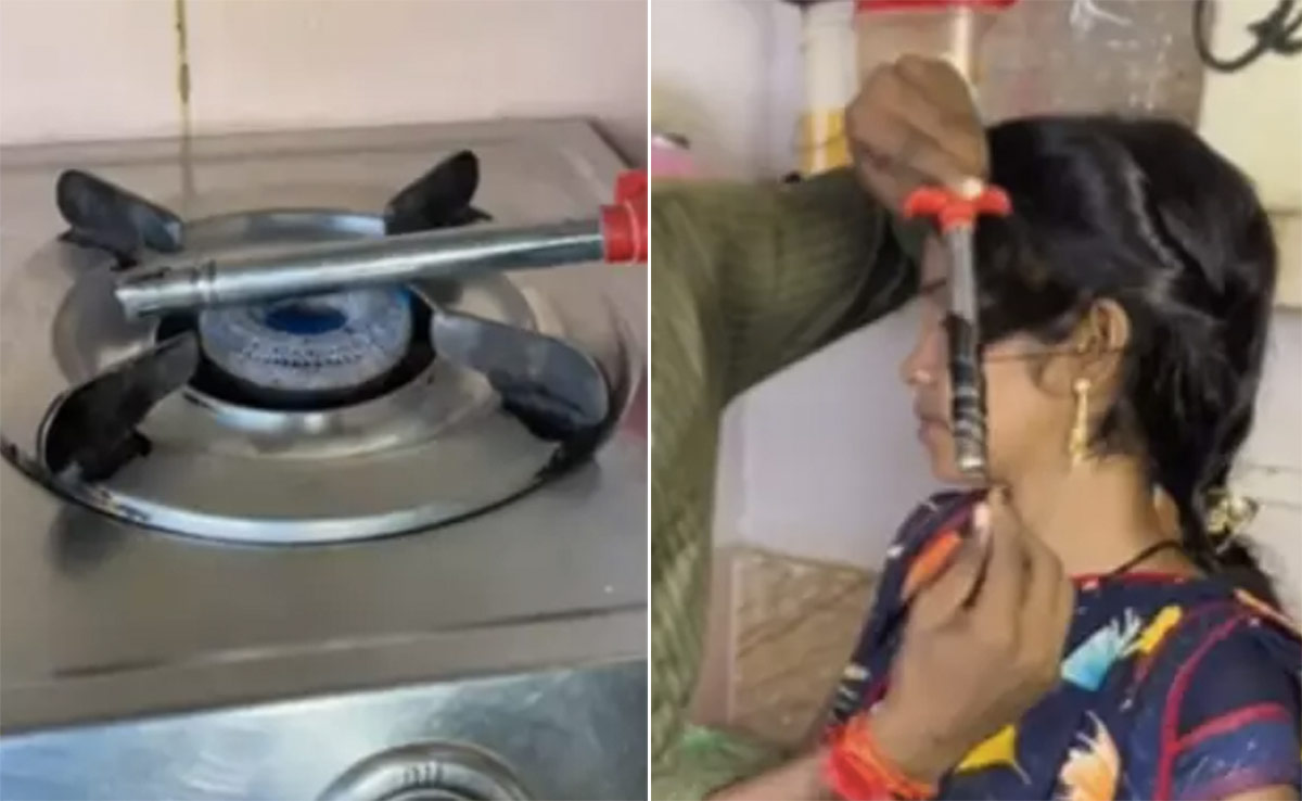 Desi Jugaad Video: दुनियाभर में जुगाड़बाज लोगों की कोई कमी नहीं और बात जब फैशन की हो तो हर तिकड़म आजमाया जाता है. हाल ही एक ऐसा ही वीडियो सामने आ रहा है, जिसमें कपल का कारनामा देखकर आप भी उनके सामने नतमस्तक हो जाएंगे. दरअसल, वीडियो में एक शख्स गैस लाइटर की मदद से महिला के बालों को कर्ल यानि की घुमावदार बनाने की कोशिश करता नजर आ रहा है, जिसे देखकर सोशल मीडिया यूजर्स भी दंग हैं.