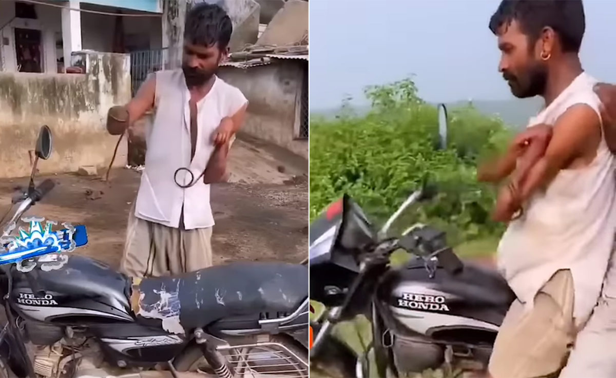 सोशल मीडिया पर वायरल होते वीडियो बर्बस ही हमारा ध्यान अपनी तरफ आकर्षित कर लेते हैं. ऐसे ही एक वीडियो को जमीदार शॉर्ट्स नाम के इंस्टाग्राम अकाउंट से शेयर किया गया है, जो उन सभी लोगों के लिए एक प्रेरणा भी है, जो मामूली सी कमी को बड़ा बताकर दूसरों के सहारे अपनी जिंदगी काटते हैं. दरअसल, वायरल हो रहे इस वीडियो में आप देखेंगे की एक युवक जिसके दोनों हाथ खराब है, वह बड़ी ही आसानी से तेज रफ्तार में बाइक चला पा रहा है. यहां तक कि बाइक वह अकेला नहीं, बल्कि अपने पीछे दो लोगों को बैठा कर चला रहा है. इस बाइक को चलाने के लिए उस व्यक्ति ने लोहे की रॉड को गाड़ी के हैंडल में इस तरह से फिट करवाया है कि, उन दोनों रॉड में वह व्यक्ति अपने दोनों हाथ फंसा कर उसे बड़ी ही आसानी से चला लेता है.
