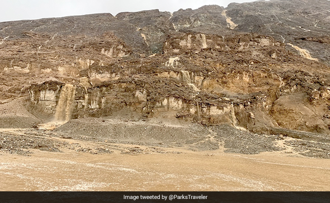 संयुक्त राज्य अमेरिका में तूफान के चलते हुई भारी वर्षा के बाद एक अप्रत्याशित दृश्य देखने को मिला. दुनिया के सबसे शुष्क और सबसे अधिक गर्म स्थान माने जाने वाले इस डेथ वैली एक खूबसूरत सा झरना देखने को मिल रहा है, जिसके वीडियो सोशल मीडिया पर भी देखने को मिल रहे हैं. यह नजारा वाकई कमाल का है. इस पर नेशनल पार्क के अधिकारियों ने बीते रविवार फेसबुक पर लिखा है कि, शनिवार की दोपहर आए तूफान ने डेथ वैली नेशनल पार्क में भारी नुकसान पहुंचाया. इसके साथ ही नेशनल पार्क ने एक आश्चर्यजनक वीडियो भी साझा किया है, जिसमें पहाड़ी के नीचे कीचड़ से भरे झरने दिखाई दे रहे हैं.