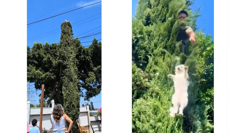 वायरल वीडियो में देखा जा सकता है कि कैसे एक आदमी पेड़ पर चढ़कर Lady तक पहुंचने की कोशिश करता है, जबकि नीचे खड़ी दो महिलाएं कंबल फैलाकर खड़ी रहती हैं, ताकि अगर Lady गिर जाए तो उसे सुरक्षित पकड़ा जा सके. यह वीडियो सोशल मीडिया प्लेटफॉर्म इंस्टाग्राम पर शेयर किया गया, जिसे अब तक 2 हजार से अधिक लोग लाइक कर चुके हैं. वीडियो में देखा जा सकता है...एक परिवार को तब तगड़ा झटका लगता है जब घर लौटने पर उनका पालतू कुत्ता गायब मिलता है और फिर उसे 35 फीट ऊंचे पेड़ पर फंसा पाया जाता है. वो को गनीमत रही की कुत्ते को सुरक्षित नीचे उतार लिया गया.