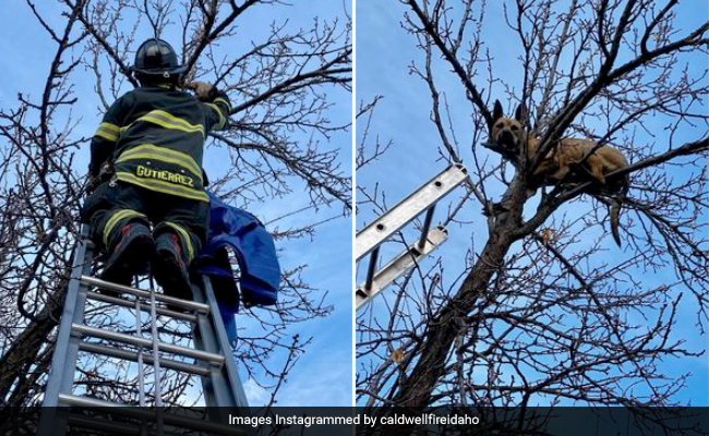 एक इंस्टाग्राम पोस्ट में, कैलडवेल फायर डिपार्टमेंट ने फंसे हुए पिट बुल-हस्की मिक्स की तस्वीरें शेयर कीं, जिसका नाम इज़ी हाई अप ऑन द ट्रीटॉप है.