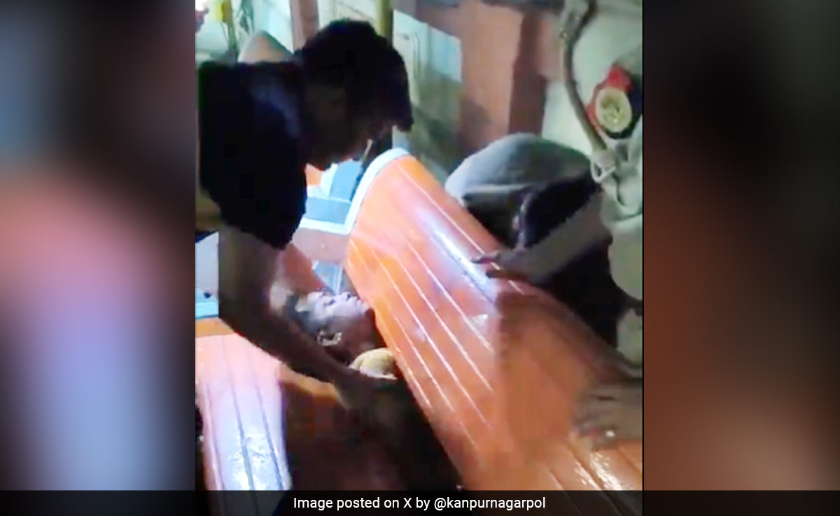 उन्होंने बताया कि शख्स नशे में था और नींद में करवट लेने के दौरान बेंच के बीच की जगह में उसकी गर्दन फंस गई. उन्हें रात में फोन करके किसी ने बताया कि पार्क की बेंच में एक शख्स की गर्दन अटक गई है. जैसे ही वो पार्क में पहुंचे उन्हें चिल्लाने की आवाज सुनाई दे रही थी. पुलिस ने पहले उसे किसी तरह शांत कराया और फिर धीरे-धीरे उसकी गर्दन को निकाला गया. कुछ देर बाद शख्स को पूरी तरह से राहत मिल गई. इस वीडियो को एक्स पर @kanpurnagarpol अकाउंट से शेयर किया गया है. वीडियो में आप देख सकते हैं कि शख्स की गर्दन बुरी तरह से बेंच में फंसी हुई है. काफी कोशिशों के बाद कानपुर पुलिस और लोगों शख्स को सुरक्षित रेस्क्यू कर लिया गया.