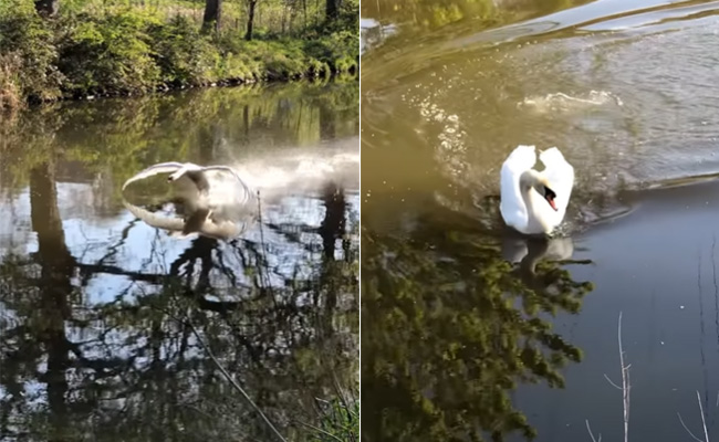 Swan Viral Video: पक्षियों को खुली हवा में उड़ते और पानी में तैरते तो आपने कई बार देखा होगा, लेकिन क्या कभी आपने किसी पक्षी को पानी में अजीबोगरीब अंदाज में मस्ती करते देखा है, अगर आपका जवाब ना है, तो हाल ही में वायरल इस वीडियो को देखना तो बनता है, जिसमें एक हंस की मस्ती देखने लायक है. इस वीडियो को देखकर आपके चेहरे पर भी मुस्कान खिल उठेगी. वीडियो को देखने के बाद सोशल मीडियो यूजर्स भी हैरान हैं.