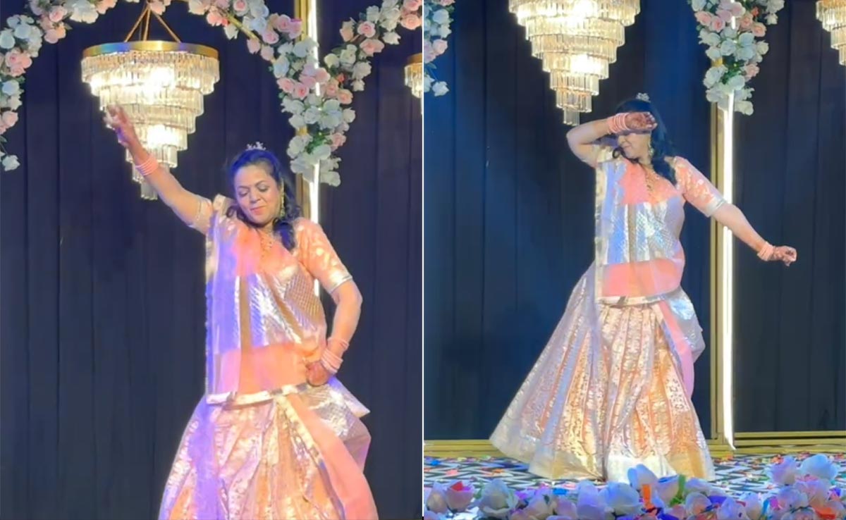 वीडियो को Silver Shimmer Choreography नाम के अकाउंट से शेयर किया गया है. वीडियो में एक महिला स्टेज पर खड़ी होकर बड़े ही ग्रेसफुल तरीके से डांस कर रही है. हल्के ऑरेज कलर का लहंगा पहने सजी-धजी सी महिला दरअसल दूल्हे की मम्मी है, जो अपनी होने वाली बहू के लिए स्पेशल परफॉर्मेंस देने स्टेज पर आई हैं. मम्मी जी ने गाना भी बहू के लिए खास चुना है. गाना है ‘अइयो कहां से गोरी, आंखों में प्यार लेके'. ये आंटी जिस तरह से हौले-हौले ग्रेसफुली और नजाकत के साथ डांस कर रही हैं, वह देख लोग उनके फैन बन गए हैं.