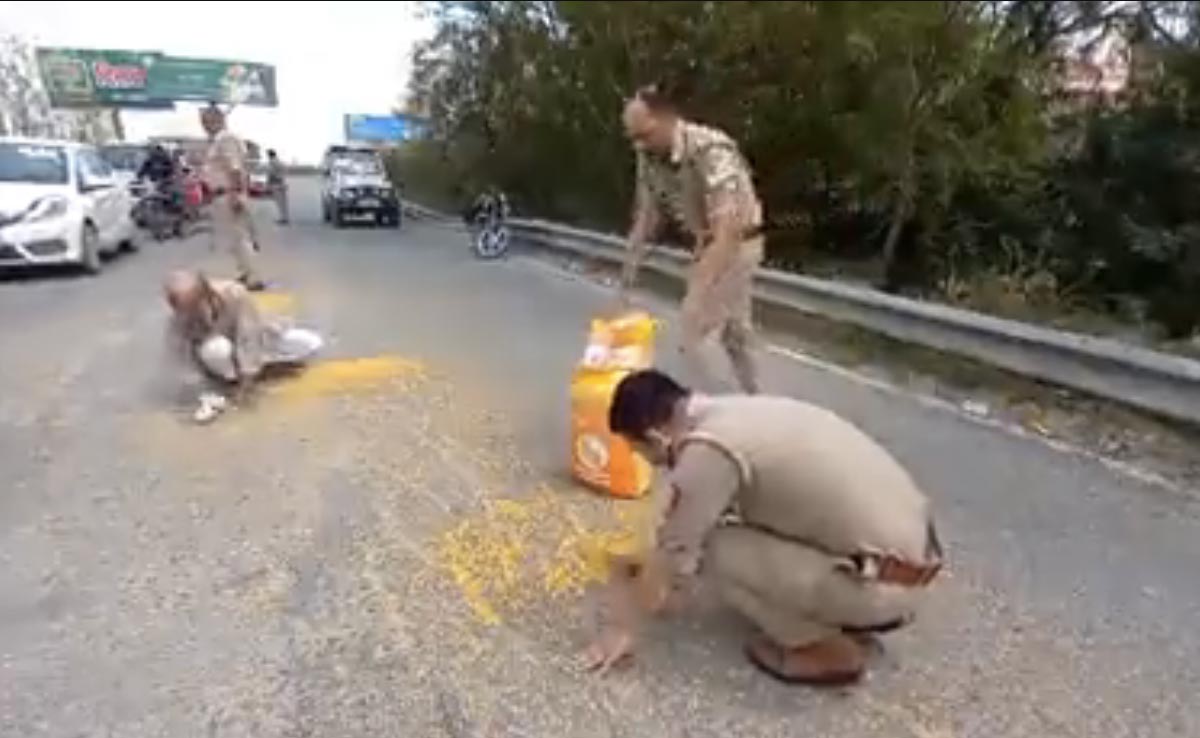 वायरल वीडियो में देखा जा सकता है कि कैसे सड़क पर दाल गिरने के कारण बुजुर्ग शख्स परेशान हो रहा है. इस शख्स की मदद के लिए कई पुलिसकर्मी मदद कर रहे हैं. कोई ट्रैफिक देख रहा है तो कोई दाल बटोर रहा है. इस वीडियो को देखने के बाद लोग इसपर रिएक्ट कर रहे हैं. वायरल हो रहे इस वीडियो को सोशल मीडिया प्लेटफॉर्म ट्विटर पर शेयर किया गया है.