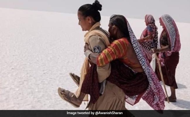 इस फोटो को आईएएस अधिकारी अवनीश शरण ने अपने ट्विटर अकाउंट पर शेयर की है. इस फोटो के साथ उन्होंने एक जानकारी भी दी है. जानकारी में उन्होंने लिखा है- गुजरात की एक महिला कांस्टेबल वर्षा परमार ने कच्छ में 86 वर्षीय बुजुर्ग को स्वास्थ्य में परेशानी होने के कारण पीठ पर उठाया है. तपते रण में 5 किलोमीटर चलकर सुरक्षित घर पहुंचाया है.
