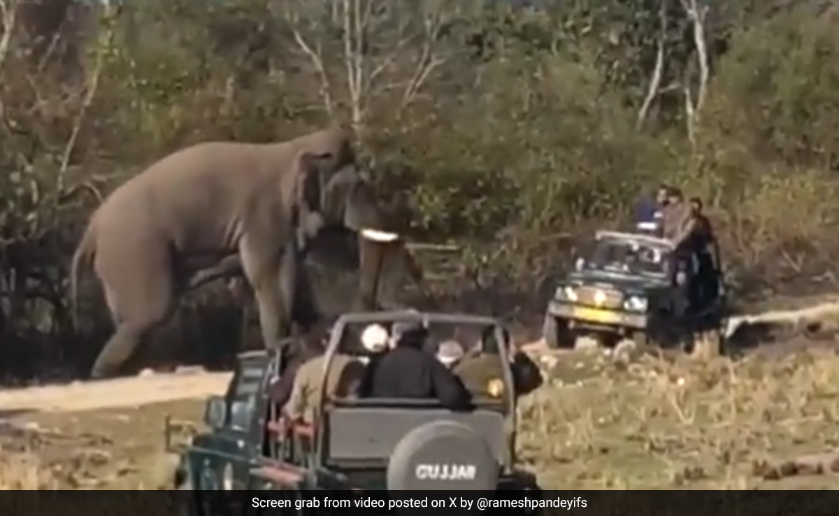 खबरों के मुताबिक, इस वीडियो को जिम कार्बेट नेशनल पार्क का बताया जा रहा है. वीडियो में आप देख सकते हैं कि 5 सफारी जीप और एक हाथी नजर आ रहा है. सभी टूरिस्ट गाड़ियां हाथी के आसपास चक्कर लगा रही हैं और हाथी को घेर लिया है. पर्यटक जमकर हूटिंग और शोर करके हाथी को परेशान कर रहे हैं. तभी हाथी गुस्से में अपनी सूंड से एक गाड़ी को धकेलने की कोशिश करने लगता है. गाड़ी में बैठे घबराकर जल्दी से उतर जाते हैं. हालांकि, हाथी न तो गाड़ी को पलटा है और न ही किसी को कोई चोट या नुकसान पहुंचाया.