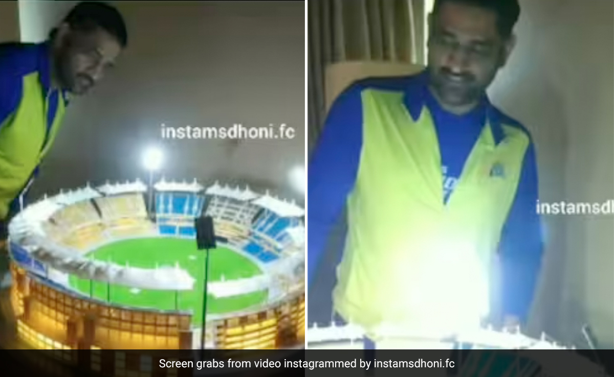 वायरल हो रहे इस वीडियो को एमएस धोनी एफसी नाम के एक पेज ने इंस्टाग्राम पर शेयर किया है. क्लिप में धोनी को अनोखे उपहार पर सरप्राइज्ड होते देखा जा सकता है. वीडियो में वह मुस्कुराते नजर आते हैं और उनकी नजर स्टेडियन के इस मिनी मॉडल से हटती ही नहीं. वीडियो में देखा जा सकता है कि, लाइटें बंद होने की वजह से स्टेडियम की रोशनी जगमगा रही होती है और धोनी का चेहरे पर भी वहीं चमक नजर आ रही होती है. वीडियो को कैप्शन देते हुए लिखा गया है, एमएस धोनी का क्रेज एक अलग ही लेवल पर है.