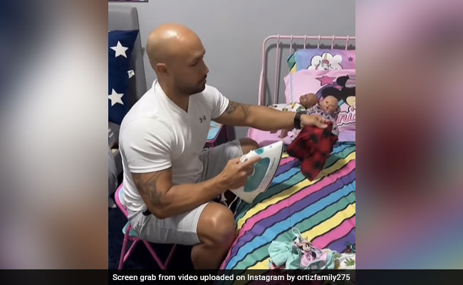 Father Daughter video: बाप-बेटी का रिश्ता बहुत खास होता है. यह बेटियों की प्यार, मस्ती और ज़िद से भरा है. एक पिता-बेटी की जोड़ी का ऐसा ही एक वीडियो वायरल हो रहा है और इंटरनेट पर इस पर मजेदार प्रतिक्रिया आ रही है. वीडियो में, पिता को अपनी बेटी की गुड़िया के कपड़े इस्त्री करते हुए देखा जा सकता है, जबकि बच्ची एक अलग बिस्तर पर बैठकर आनंद ले रही है.