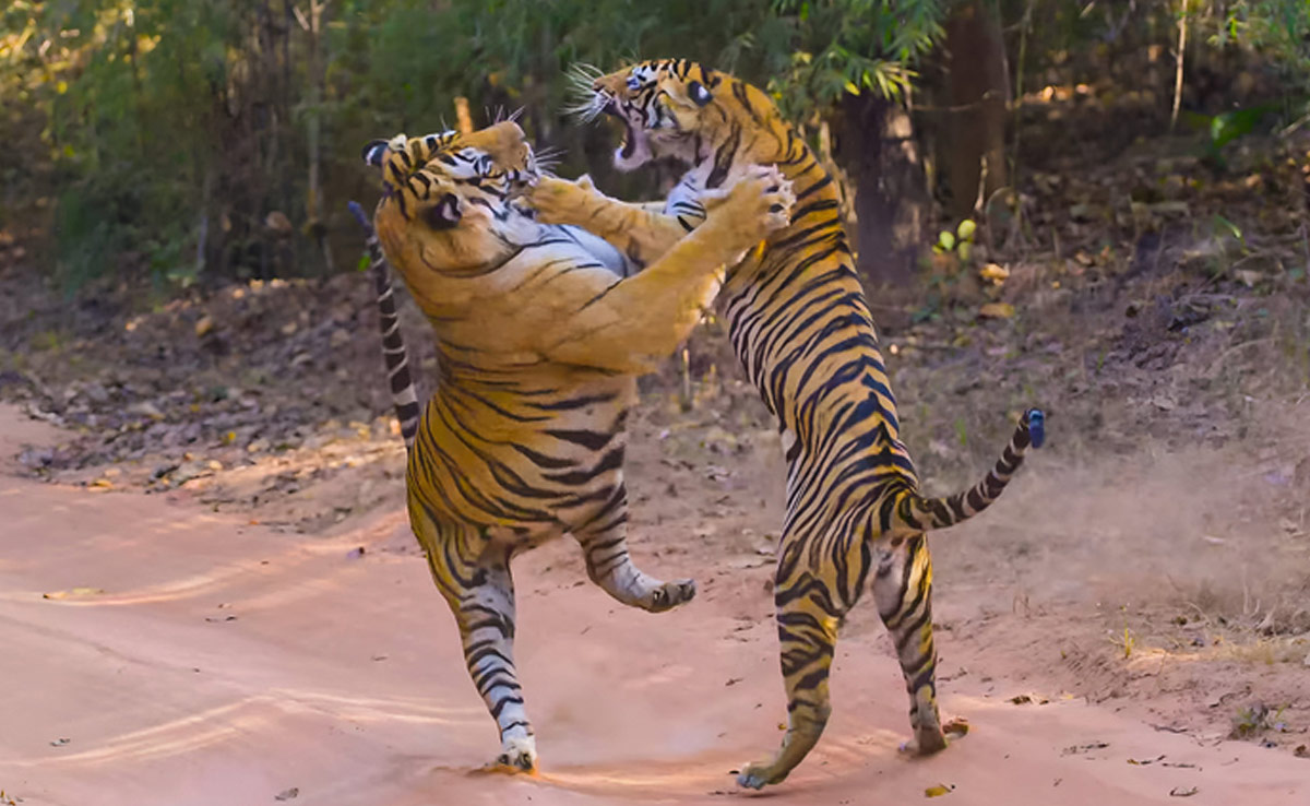 बाघों की लड़ाई का जबरदस्त वीडियो