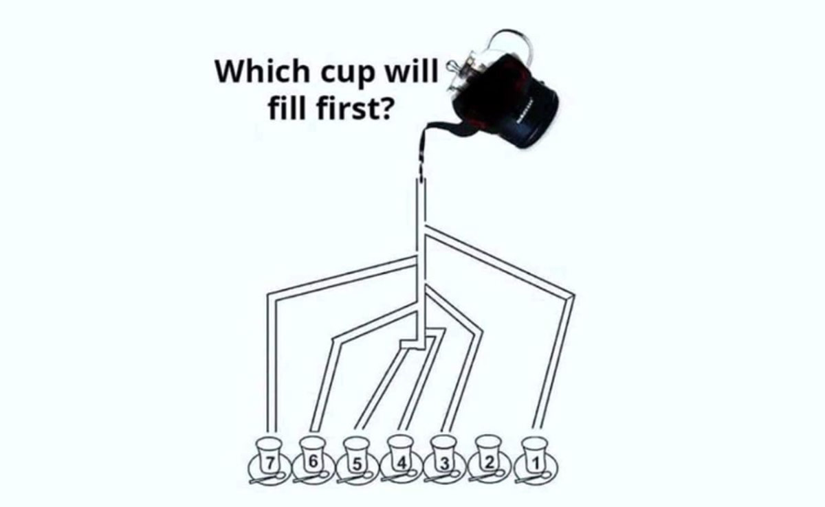 ब्रेन टीज़र को 'memes' नाम के थ्रेड्स पेज पर इस कैप्शन के साथ साझा किया गया था, "अपने आईक्यू का परीक्षण करें." टीज़र में एक केतली को एक से सात तक लेबल वाले कपों में तरल पदार्थ डालते हुए दिखाया गया है. जबकि कुछ कपों तक जाने वाले स्ट्रॉ ब्लॉक हो गए हैं, कुछ टूट गए हैं. क्या आप समझ सकते हैं कि कौन सा कप पहले भरेगा?