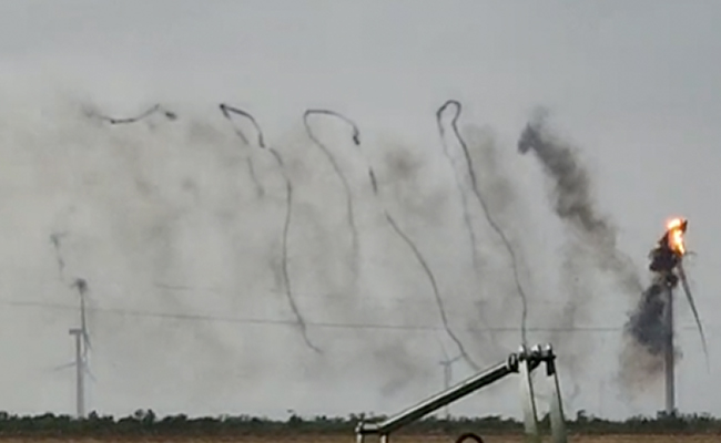 उत्तरी टेक्सास में क्रॉवेल के पास विंड एनर्जी पैदा करने के लिए इस्तेमाल की जाने वाली एक विशाल पवन चक्की में आग (fire) लग गई. इस दौरान आग लगने के बाद भी पवन टरबाइन घूमती रही, आग की वजह से हवा में धुएं के काले-काले छल्ले उड़ते रहे. हाईवे से गुजर रहे राहगीरों ने कैमरे में इस घटना को कैद कर लिया और जल्द ही ये सोशल मीडिया (social media) पर वायरल (viral) होने लगा. वीडियो (video) में काला-काला धुआं ऐसे उड़ रहा है, जैसे किसी ने कागज पर कोई आकृति उकेरी हो.