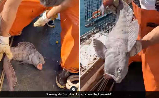 संयुक्त राज्य अमेरिका (United States) में एक मछुआरे ने हाल ही में एक दैत्य भेड़िया मछली (monster wolf fish) पकड़ी, उसे खाने के लिए एक झींगा मछली दी और उसे वापस समुद्र में फेंक दिया. मेन मछुआरे जैकब नोल्स (fisherman Jacob Knowles) ने इंस्टाग्राम पर विशाल मछली (giant fish) को पकड़ते हुए खुद का एक वीडियो पोस्ट किया. क्लिप की शुरुआत में, भेड़िया मछली को नाव के फर्श पर लेटे हुए देखा जा सकता है. जैसे-जैसे वीडियो आगे बढ़ता है, नोल्स को जीव को उठाते और कैमरे के सामने पकड़ते हुए देखा जा सकता है.