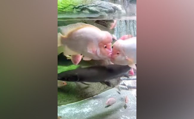 वायरल वीडियो में देखा जा सकता है कि कैसे दो मछलियां आपस में प्रेम कर रही हैं. दोनों एक दूसरे को किस रही हैं. ऐसा लग रहा है कि दोनों की जोड़ी काफी रोमांटिक हो रही है. सोशल मीडिया पर यह वीडियो वायरल हो रहा है. लोगों को यह वीडियो इतना भा रहा है कि लोग कमेंट कर रहे हैं.
