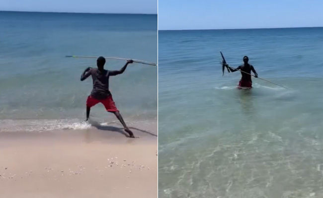 हैरान कर देने वाले इस वीडियो में एक शख्स मछली पकड़ते हुए देखा जा रहा है. वीडियो में शख्स का मछली पकड़ने का अंदाजा लोगों से हटकर है, जो इन दिनों हर किसी का ध्यान अपनी ओर खींच रहा है. वीडियो में शख्स मछली पकड़ने के लिए एक अजीब से यंत्र का इस्तेमाल करता दिखाई दे रहा है. वीडियो में आप देखेंगे कि शख्स अपने हाथ में लिए इस यंत्र को समुद्र में फेंक कर एक ही वार से मछली का शिकार कर लेता है, जिसे देखकर हर कोई दंग है.