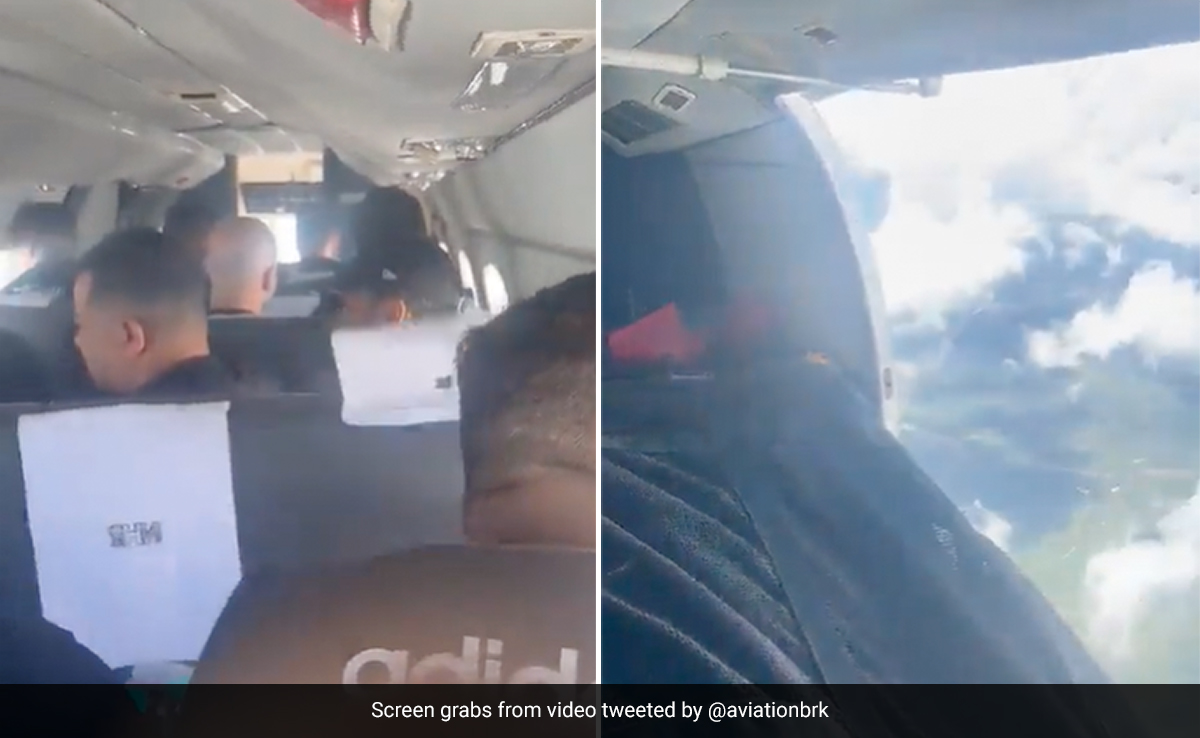 इस वीडियो को ब्रेकिंग एविएशन न्यूज एंड वीडियोज नाम के एक पेज ने ट्विटर पर शेयर किया है. क्लिप में हवाई जहाज का दरवाजा साफ नजर आ रहा है, जो बीच हवा में खुल जाता है. वीडियो में देखा जा सकता है कि, फ्लाइट के अंदर तेज हवा का झोंका अंदर बाहर हो रहा है. फ्लाइट के अंदर हवा के तेज झोंके आते देखे जा सकते हैं. इस बीच फ्लाइट का गेट खुल कर हवा में उड़ता और आसमान में तैरते बादल साफ नजर आ रहे हैं.
