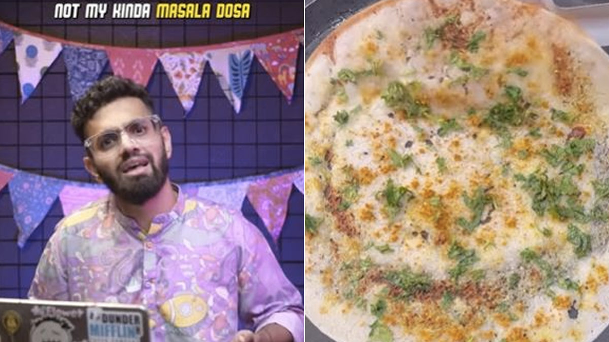 इस वीडियो को मूल रूप से तन्वी गोर ने अपने इंस्टाग्राम हैंडल @golus_kitchen_by_tanvigor पर शेयर किया था. फिर, फेमस कॉमेडियन विविध ने वीडियो पर एक रील शेयर की, जो वायरल हो रही है. बहुत ही कम समय में 226k से अधिक व्यूज और 38k लाइक्स इस पर आ चुके हैं. वीडियो में दिखाया गया है कि, कैसे ब्लॉगर ने सूजी को मैगी नूडल्स के साथ मिलाकर डोसा बैटर बनाया. पहले कच्चे मैगी नूडल्स का महीन पाउडर बनाकर उसका बैटर तैयार किया जाता है. इसके बाद तवे पर इस बैटर को फैला कर उस पर मैगी मसाला छिड़क कर इसे तैयार कर लिया जाता है और फिर इसे प्लेट में डाल कर सर्व करते हुए दिखाया जाता है. कॉमेडियन ने अपनी फनी स्टाइल में वीडियो पर अपना रिएक्शन दिया है.