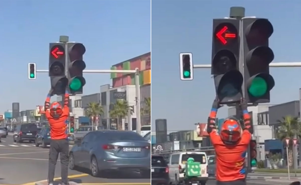 आमतौर पर सड़क पर कोई सामान पड़ा हुआ दिखता है, तो लोग उसे नजरअंदाज कर आगे बढ़ जाते हैं और अगर ट्रैफिक सिग्नल खराब या टूटा दिखे तो उसकी फिक्र की जगह ये इत्मीनान होता है कि, चलो लाइट पर रुकने की झंझट खत्म हुई, लेकिन दुबई में जब एक चौराहे पर ट्रैफिक सिग्नल टूट कर गिरा, तो एक डिलीवरी बॉय ने गजब का कारनामा करके दिखाया. यह डिलीवरी बॉय सिग्नल पर रुका और अपनी पूरी कोशिश कर ट्रैफिक सिग्नल को जोड़ दिया. जब सिग्नल ठीक तरह से जुड़ गया तब ही डिलीवरी बॉय आगे बढ़ा. आप वायरल वीडियो में देख सकते हैं कि, कैसे जब सड़क पर ट्रैफिक रुका हुआ है, तब लाल शर्ट पहने एक युवक सिग्नल की ग्रीन लाइट को जोड़ने की कोशिश करने लगता है. थोड़ी देर में उसकी कोशिश कामयाब होती है और वो अपनी बाइक की तरफ लौट जाता है.
