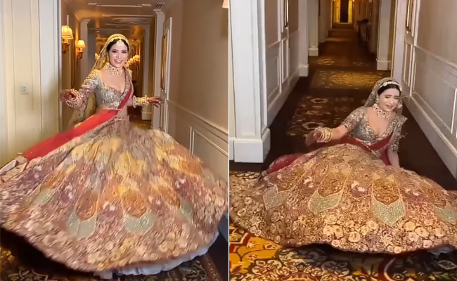 वायरल हो रहे इस वीडियो में भारी भरकम लहंगे (heavy lehenga) में दुल्हन 'मेरा दिल ये पुकारे आजा..' (Mera Dil Yeh Pukare Aaja song) गाने पर झूमती नजर आती है. वीडियो में दुल्हन (bride) को देखकर अंदाजा लगाया जा सकता है कि, उसका लहंगा वाकई बेहद भारी है, यही वजह है कि अगले पल वो 'चारो खाने चित्त' नजर आती है. वीडियो में आगे आप देखेंगे कि, दुल्हन अपने लहंगे का बोझ संभाल नहीं पाती और अगले ही पल वो जमीन पर धड़ाम से नीचे गिर जाती है. इसके बाद खुद भी दुल्हन जोर-जोर से हंसने लगती है. वीडियो को देखने के बाद आप भी ठहाके मार-मारकर हंसने को मजबूर हो जाएंगे.