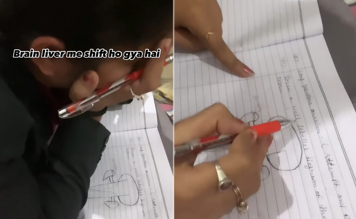 Funny Diagram of Human Excretory System: कभी-कभी सोशल मीडिया पर ऐसे वीडियो वायरल हो जाते हैं, जिन्हें देखने के बाद आप अपनी हंसी नहीं रोक पाते. ऐसा ही एक वीडियो सामने आ रहा है, जिसमें एक टीचर एग्जाम की कॉपी चेक करते हुए नजर आ रही हैं, जिसमें एक बच्चे ने लीवर की जगह दिमाग लिखते हुए एक ऐसा डायग्राम बना दिया है, जिससे वह हंसी का पात्र बन गया है. उसकी कॉपी चेक करने के बाद टीचर भी हंस-हंस कर लोटपोट हो गई हैं और कॉपी चेक करते-करते वह इस स्टूडेंट के कारनामे का वीडियो बनाने से खुद को नहीं रोक पाईं. आइए जानते हैं इस फनी वीडियो का सच क्या है.