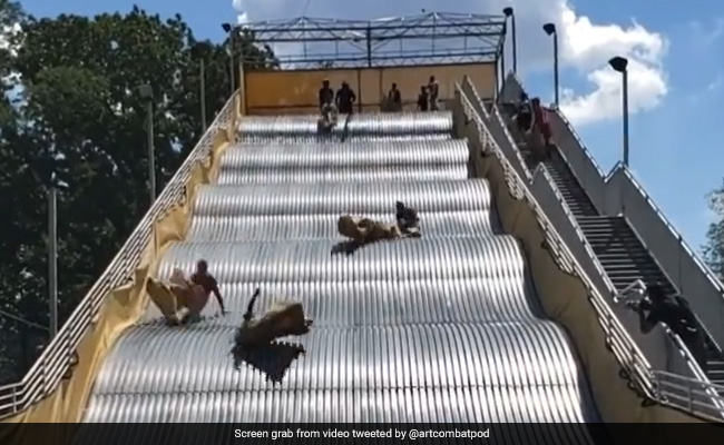 इस ऐतिहासिक राइड की वजह से हुई अराजकता का एक वीडियो तब से ट्विटर पर शेयर किया गया है. वीडियो में आप देख सकते हैं कि स्लाइड पर कई लोग सवार हैं, जो उन्हें हवा में उछालता है, जो बुरी तरह से नीचे गिरते हैं.