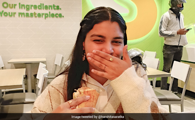 हर्षिता नाम की लड़की ने 20 दिसंबर को ट्विटर पर सब सैंडविच का आनंद लेते हुए एक तस्वीर शेयर की. हालांकि, फोटो में बिलिंग काउंटर के पास खड़ा हेलमेट पहने एक शख्स भी शामिल है. हर्षिता अजनबी को अपनी तस्वीर से हटाना चाहती थी और मदद के लिए इंटरनेट का सहारा लिया.
