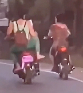 दरअसल, इस वीडियो में आप देखेंगे कि एक लड़की बाइक पर पीछे बैठी हुई है, इस दौरान वह अपने बगल से गुजर रही एक दूसरी बाइक सवार को लात मारने की कोशिश करती है, ताकि वह गिर जाए. हालांकि लड़की का पैर वहां तक नहीं पहुंचा पाता और उसे इंस्टेंट अपने कर्मों की सजा मिल जाती है. वीडियो में आप देखेंगे कि कैसे एक लड़की दूसरी बाइक सवार लड़की को लात मारकर गिराने की कोशिश कर रही है, लेकिन इस चक्कर में उसका खुद का बैलेंस बिगड़ जाता है और वह खुद ही बीच रास्ते पर बाइक से गिर जाती है.