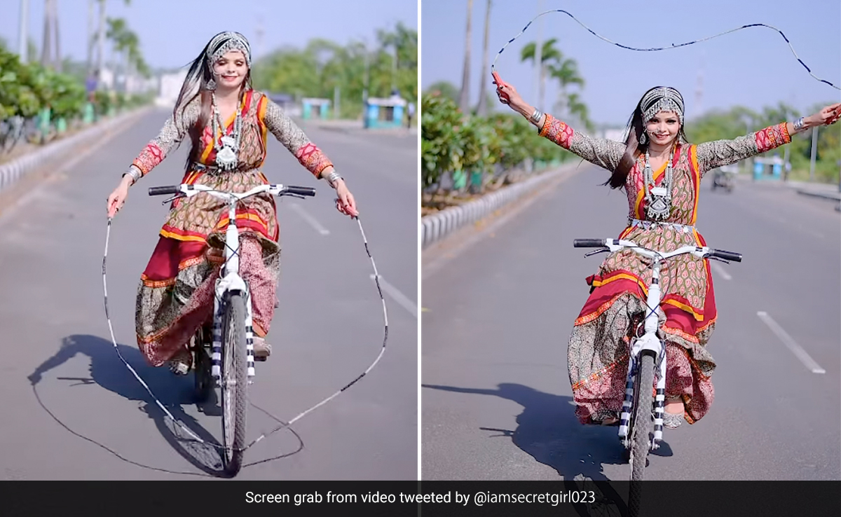 @iamsecretgirl023 नाम के इंस्टाग्राम यूजर ने वीडियो शेयर किया, जिसमें वह यह कारनामा करती दिख रही है. वीडियो की शुरुआत में ट्रेडिशनल आउटफिट पहने एक महिला को साइकिल चलाते हुए दिखाया गया है. वह सड़क पर गुजरती कुछ कारों के साथ सवारी करती नजर आ रही है. साइकिल चलाना शुरू करने के कुछ ही देर बाद, वह एक स्किपिंग रस्सी निकालती है और उसका इस्तेमाल करना शुरू कर देती है. और ऐसा वो वीडियो के अंत तक करती है.