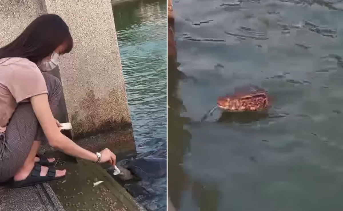 इंस्टाग्राम पर Phuket Insta नाम के पेज से शेयर हुए इस वीडियो में एक लड़की बड़े ही प्यार से कुछ कछुओं को नदी या तालाब के किनारे ब्रेड खिलाती नजर आती है. वह एक-एक टुकड़े लेकर कछुओं को खिलाती है. चार-पांच कछुए किनारे पर आकर खाने का मजा ले रहे होते हैं, लेकिन तभी तेज रफ्तार में एक भयानक सा जानवर वहां पहुंचता है. ये देखने में कुछ-कुछ मगरमच्छ की तरह दिखता है. ये मगरमच्छ सा दिखने वाला जानवर कछुओं पर झपट्टा मार देता है, जिसके बाद पानी में अफरा-तफरी सी मच जाती है. लड़की तो उल्टे पैर वहां से भाग निकलती है. कुछ ही देर में पानी में सिर्फ ये ड्रैगन नजर आता है, जो किनारे पर शांत होकर शायद उन्हीं ब्रेड के टुकड़ों का इंतजार कर रहा होता है.