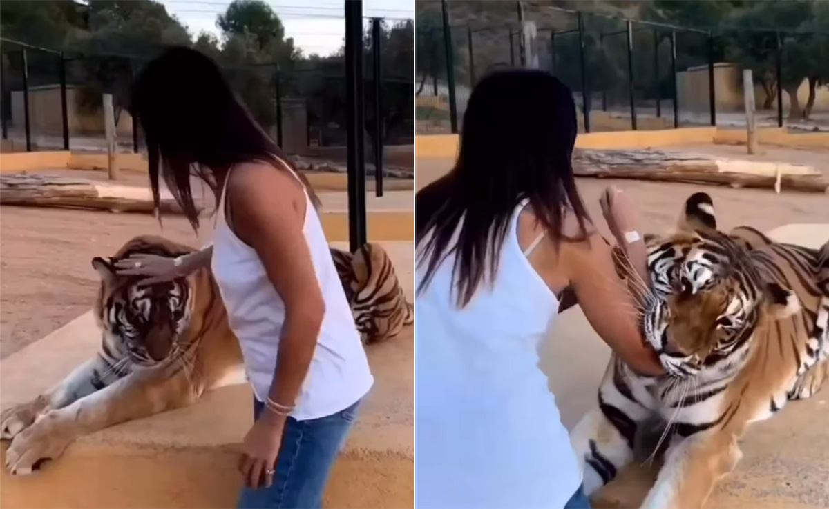 रोंगटे खड़े कर देने वाले इस वीडियो को सोशल मीडिया प्लेटफॉर्म इंस्टाग्राम पर शेयर किया गया है, जिसे देखकर यूजर्स की सांसें अटक रही है. देखकर अंदाजा लगाया जा सकता है कि, वीडियो किसी जू का है. जहां एक लड़की टाइगर को पुचकारने की कोशिश करती हुई नजर आ रही है, लेकिन अगले ही पल खूंखार आदमखोर जानवर लड़की की इस हरकत से बिदक हो उठता है और झपट्टा मारकर उसके हाथ और पैर अपने जबड़ों से दबोचने लगता है. इस वीडियो को देखकर यकीनन किसी की भी हार्टबीट तेज हो सकती है, इसलिए इस वीडियो को अपने रिस्क पर देखिए.