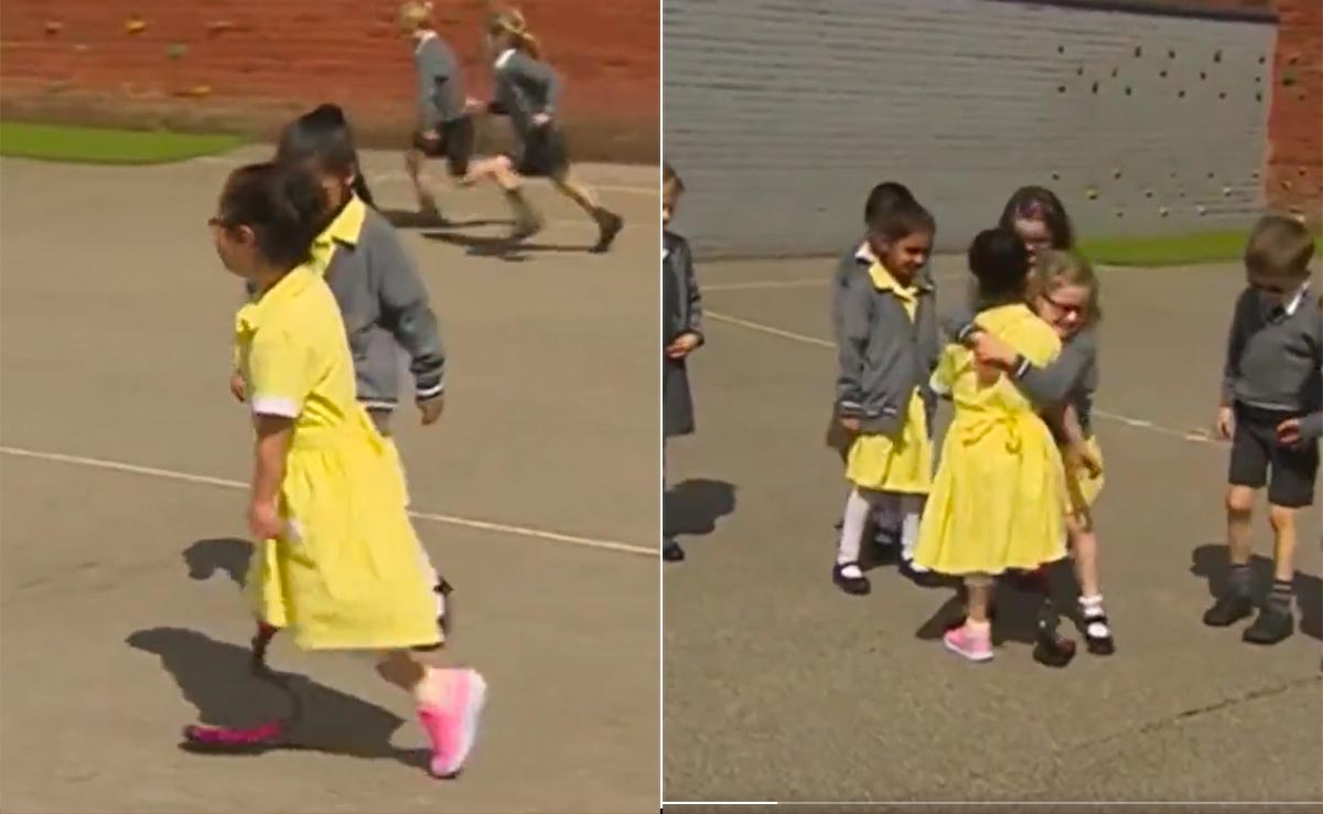 सोशल मीडिया (Social Media Viral Video) पर कई ऐसे वीडियो होते हैं, जिन्हें देखने के बाद दिल गदगद हो जाता है. अभी हाल ही में सोशल मीडिया पर एक वीडियो वायरल हो रहा है. इस वीडियो में देखा जा सकता है कि एक बच्ची नकली पैर (prosthetic leg) के साथ जाती है. स्कूल में पहुंचते ही उसके दोस्त उसे घेर लेती है. तभी कुछ ऐसा होता है, जिसे देखने के बाद दिल गदगद हो जाता है. सोशल मीडिया पर इस वीडियो को देखने के बाद लोग पूरी तरह से दंग हो रहे हैं.