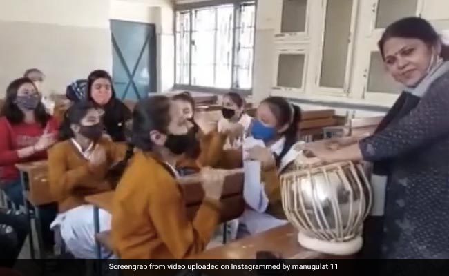 वायरल हो रहा वीडियो एक स्कूल के क्लास रूम का है, जहां छात्राएं अपनी टीचर्स के साथ मिलकर एक से बढ़कर एक गाने गाती नजर आ रही है. वीडियो में एक टीचर तबला बजाती नजर आ रही हैं. वहीं छात्राएं मस्ती के मूड में टीचर्स के साथ मिलकर सबसे पहले 'किसने बंसी बजाई आधी रात को' गाती नजर आती हैं. उसके बाद छात्राएं 'हंसता हुआ नूरानी चेहरा, काली ज़ुल्फ़ें रंग सुनहरा' गाती नजर आती हैं. वीडियो के आखिर में सभी 'लग जा गले कि फिर ये हसीं रात हो न हो' गाती नजर आ रही हैं. वीडियो में जोश देख छात्राओं और टीचर्स की खुशी का अंदाजा लगाया जा सकता है.