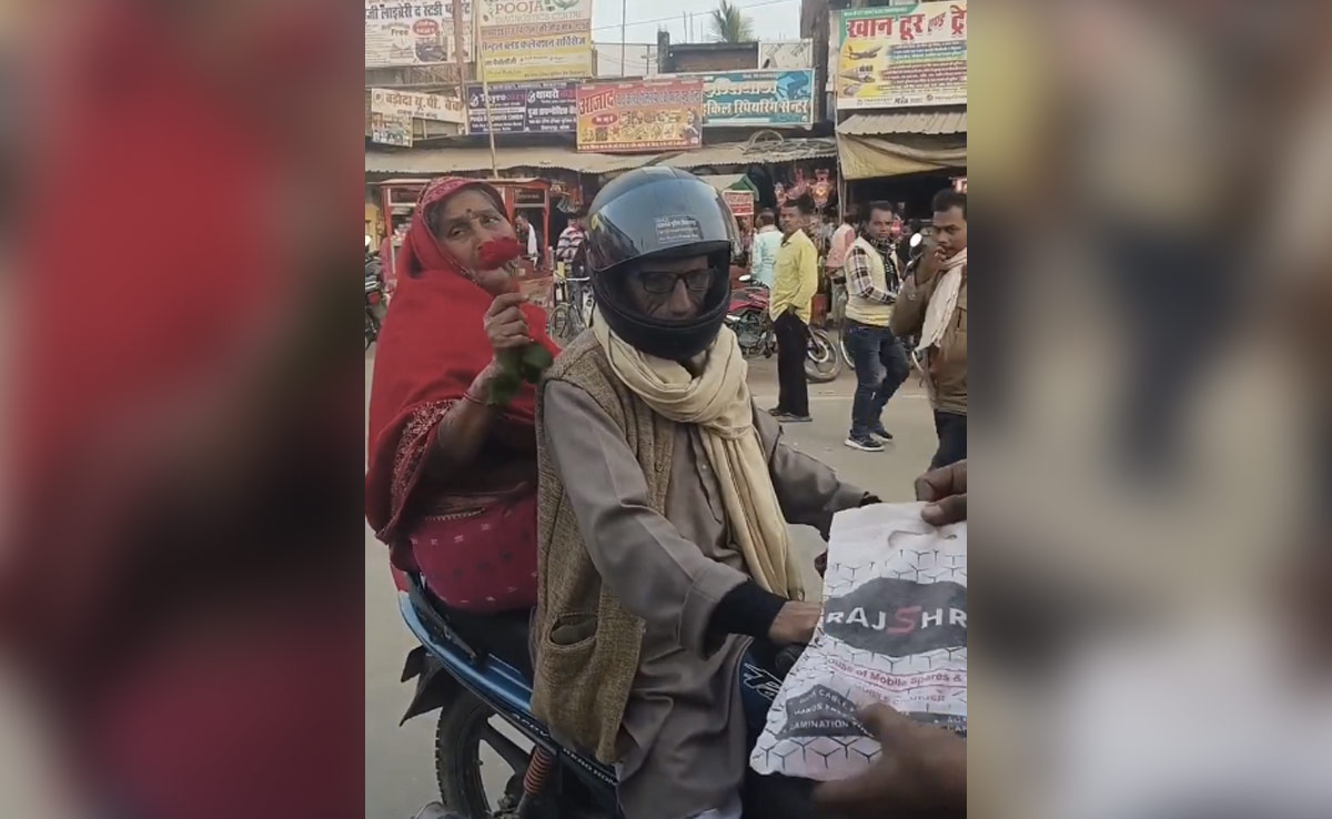 वायरल वीडियो में देखा जा सकता है कि एक दादा अपनी पत्नी को बाइक पर बैठाकर मार्केट में घुमा रहे हैं. तभी एक पुलिसकर्मी आता है और दादा की बाइक को रुकवा देता है. पुलिसकर्मी दादा और दादी से भोजपुरी में संवाद करता है. फिर दादी को गुलाब का फूल देता है और दादा को हेलमेट देता है. सोशल मीडिया पर यह वीडियो काफी पसंद किया जा रहा है. इस वीडियो को देखने के बाद लोग कमेंट कर रहे हैं.