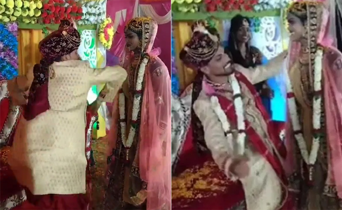 इस मजेदार वीडियो में दूल्हे को स्टेज पर मस्ती से झूमते देखा जा रहा है. दूल्हा-दुल्हन का ये डांस वीडियो सोशल मीडिया पर खूब वायरल हो रहा है, जिसे देखकर आप भी थिरकने को मजबूर हो जाएंगे. वीडियो में देखा जा सकता है कि, भोजपुरी गाना बजते ही दूल्हे पर डांस का बुखार चढ़ जाता है और भी वह अपने जबरदस्त से गर्दा उड़ा देता है. दूल्हे को इस तरह डांस करते देखकर दुल्हन की हंसी छूट पड़ती है.