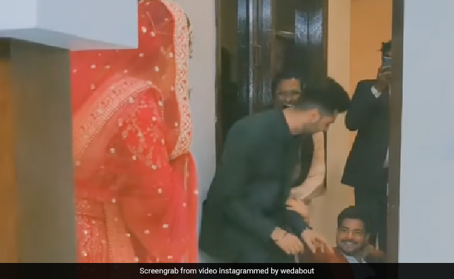 वायरल हो रहे इस वीडियो में आप देख सकते हैं कि दुल्हन पूरी तरह से रेडी है और वो दरवाज़ा खोलती है. दरवाज़ा खोलते ही ढेर सारे दोस्त एकसाथ खड़े नज़र आते हैं और वो दुल्हन को देखते ही होश खो बैठते हैं और ज़ोर-ज़ोर से शोर मचाते हुए एक-दूसरे के ऊपर गिरने लग जाते हैं. वीडियो में आप देख सकते हैं कि सभी खूब हंस रहे हैं और ज़ोर-ज़ोर से शोर मचा रहे हैं. उनको हंसता देख दुल्हन भी खूब तेजी से हंसते लग जाती है.