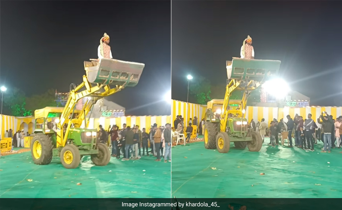 वायरल हो रहे वीडियो में दिखाया गया है कि दूल्हा शादी में ट्रैक्टर वाले JCB से एंट्री कर रहा है. आपने में से कुछ लोगों ने जेसीबी का लोडर तो जरूर देखा होगा, ट्रैक्टर वाला, वीडियो में दूल्हा उसी में खड़े होकर एंट्री कर रहा है. वहां मौजूद दोस्त और रिश्तेदार उसे हैरानी से देख रहे हैं. कुछ लोगों की तो हंसी ही नहीं रुक रही है. तो वहीं बाकी लोग वीडियो बना जुटे हैं. क्या आपने पहले कभी दूल्हे की ऐसी एंट्री देखी थी.