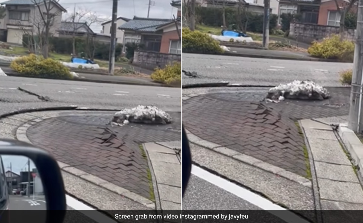 जापान के तट पर भूकंप का केंद्र होने के कारण, बड़े पैमाने पर क्षति के अलावा, कई स्थानों पर जमीन में दरारें दिखाई दीं. इंस्टाग्राम पर javyfeu नाम के अकाउंट से भूकंप के दौरान का एक वीडियो शेयर किया गया है, जिसे देख आपके होश उड़ जाएंगे. सोशल मीडिया पर शेयर किया गया ये वीडियो वीडियो भूकंप के दौरान जमीन की सतह पर लहरदार गतिविधियों को दिखाता है. वीडियो को देख ऐसा लगता है, जैसे जमीन के अंदर समंदर जैसा लहरे उठ रही हों और जमीन की सतह डोल रही हो.