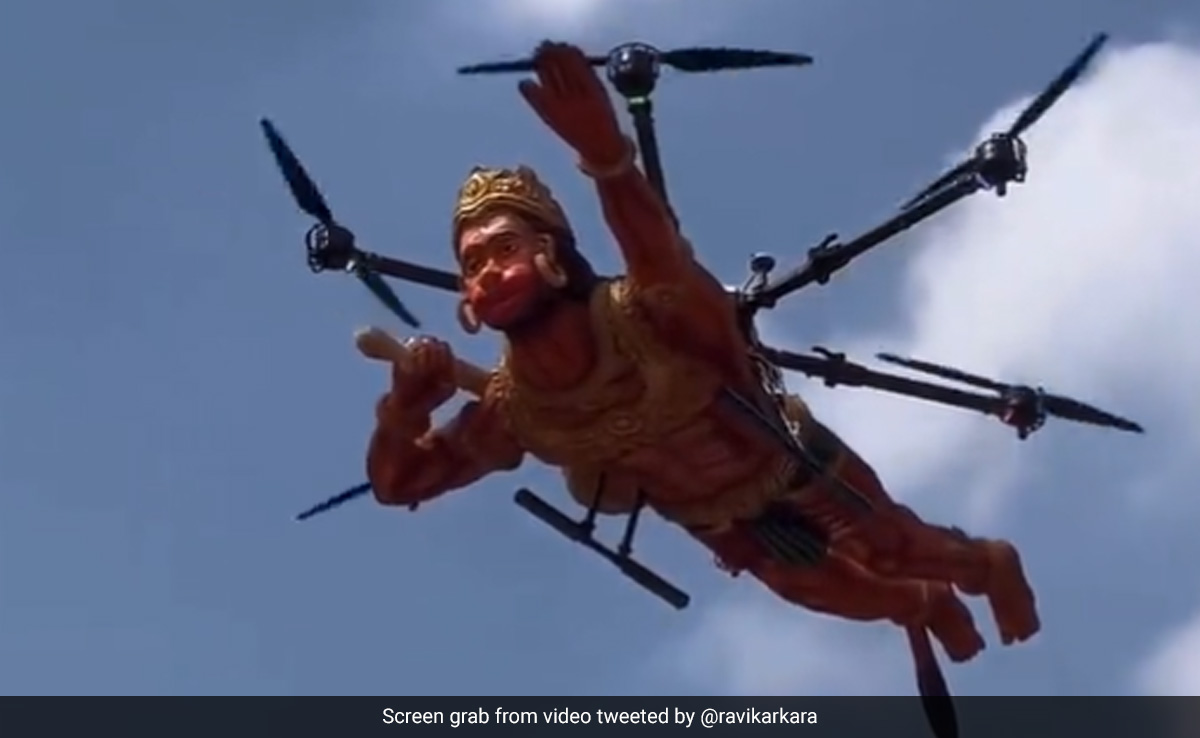 ऐसा माना जाता है कि यह अद्भुत दृश्य अक्टूबर में आयोजित दशहरा समारोह के दौरान कैप्चर किया गया था. इसमें ड्रोन को दिखाया गया है, जिसे हनुमान की दिव्य आकृति के अनुसार आकार दिया गया है, जो आकाश में खूबसूरती से उड़ रहा है, जैसे कि नीचे के लोगों को आशीर्वाद दे रहा हो.
