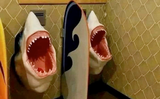 वायरल हो रहे इस मजेदार 'शार्क टॉयलेट' वाली तस्वीर को देखकर यूजर्स भी दंग रह गए हैं. यह तस्वीर यूं तो बेहद यूनिक मगर अजीबोगरीब है. तस्वीर में एक बड़ी सी शार्क टॉयलेट में दिखाई दे रही है, जो अपना बड़ा सा मुंह खोले हुए है. पुरुषों के इस्तेमाल वाले इस टॉयलेट में दिख रही शार्क को देखकर ऐसा लग रहा है मानो कोई खतरनाक शार्क सच में अपना खूनी मुंह फाड़े टॉयलेट में घुस आई हो. जरा सोचिए अगर कोई शख्स अचानक से टॉयलेट के अंदर आ जाए, तो यकीकनन उसकी सांसें अटक जाएंगी.