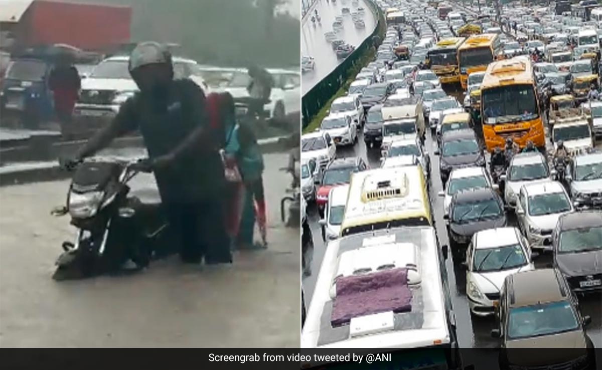 वायरल हो रहे इस वीडियो में कई वाहन बारिश के पानी में आधे डूब नजर आ रहे हैं. वीडियो को देखकर अंदाजा लगाया जा सकता है कि, बारिश के चलते सड़कों पर दो-दो फीट पानी भर गया है, जिसके चलते चौपहिया और दोपहिया वाहन सवारों को खासी दिक्कत का सामना करना पड़ा.