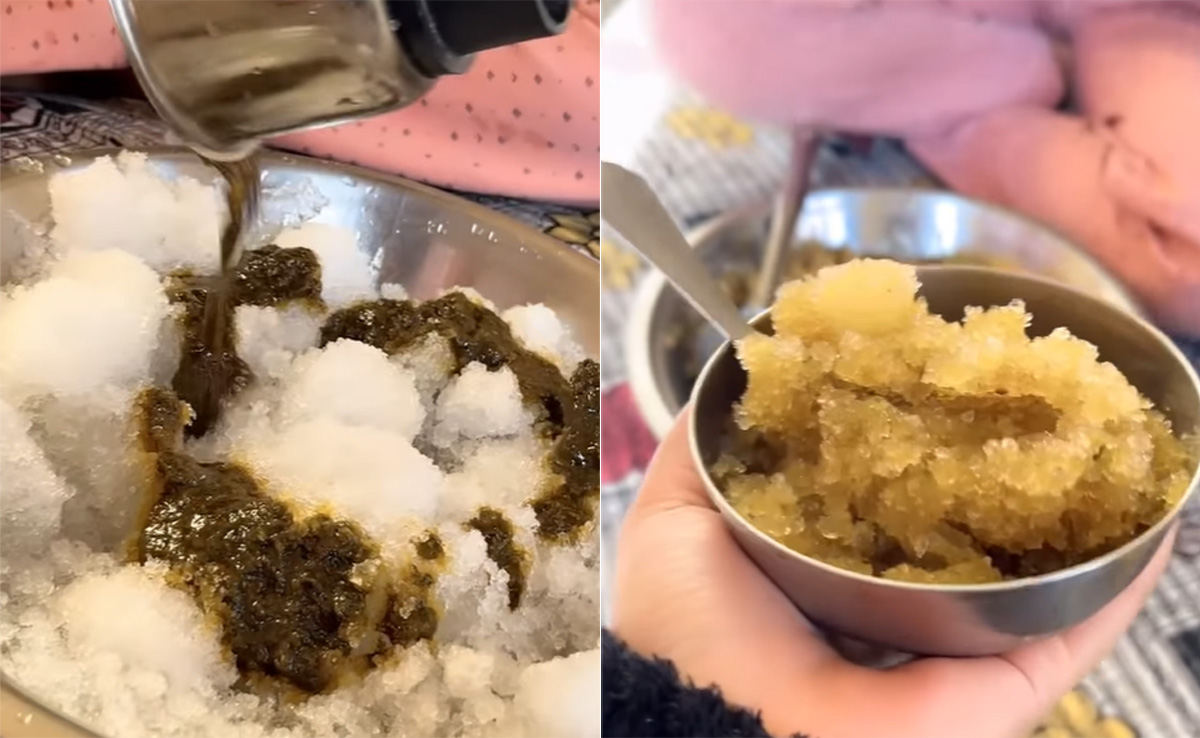Ice Chutney Viral Video: अपने लंच और डिनर का स्वाद बढ़ाने के लिए लोग कई बार अपनी पसंद के अनुसार तरह-तरह की चटनियां खाना पसंद करते हैं. यूं तो आजकल खाने के नाम पर लोग पता नहीं क्या-क्या कॉम्बिनेशन बना लेते हैं, जिसका आप अंदाज़ा भी नहीं लगा सकते. इंटरनेट पर अक्सर ऐसे वीडियो सामने आते रहते हैं, जो कई बार दिमाग का दही कर देते हैं, तो कई बार सोचने पर मजबूर कर देते हैं. हाल ही में एक ऐसा ही वीडियो सामने आ रहा है, जिसमें बर्फ की चटनी बनाने का सीक्रेट फॉर्मूला बताया जा रहा है, जिसे देखकर लोग दंग हैं. आपकी जानकारी के लिए बता दें कि, हिमाचल प्रदेश के कुछ हिस्सों में इस तरह की चटनी को पसंद की जाती है. आप भी डालिए एक नजर.