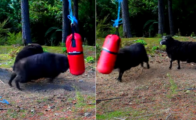 जंगल में पंचिंग बैग को सिर से हिट करते इन जानवरों का VIDEO हुआ वायरल