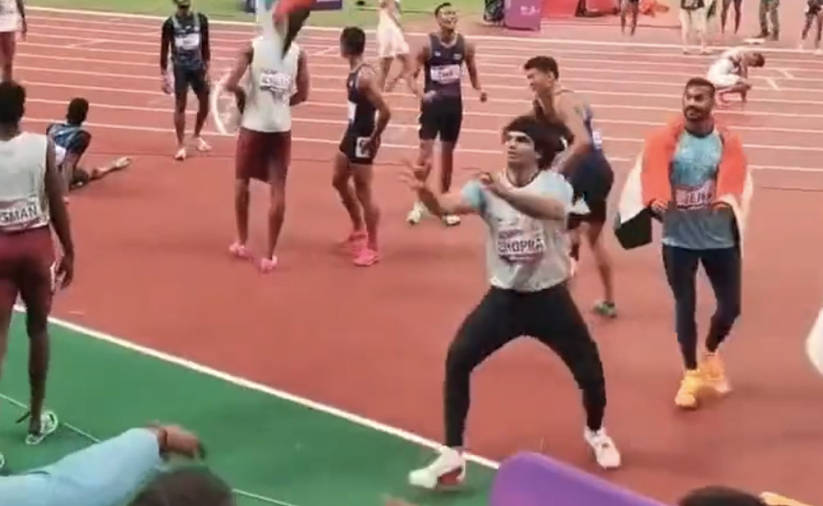 वीडियो में देखा जा सकता है कि जीत के बाद जश्न मनाने के लिए नीरज चोपड़ा दर्शकों के पास जा पहुंचे. वहां किसी दर्शक ने तिरंगे को नीरज चोपड़ा के पास भेजा. तिरंगा दूर होने के कारण जमीन पर गिर रहा था तभी नीरज चोपड़ा ने शानदार कैच लेकर उसे गिरने से बचा लिया. सोशल मीडिया पर यह वीडियो वायरल हो रहा है और सभी को पसंद भी आ रहा है.