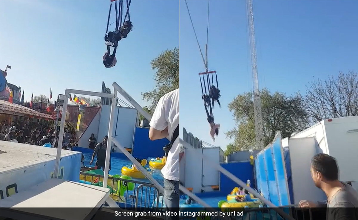 चलते झूले से गिरी लड़की उलटी लटकी