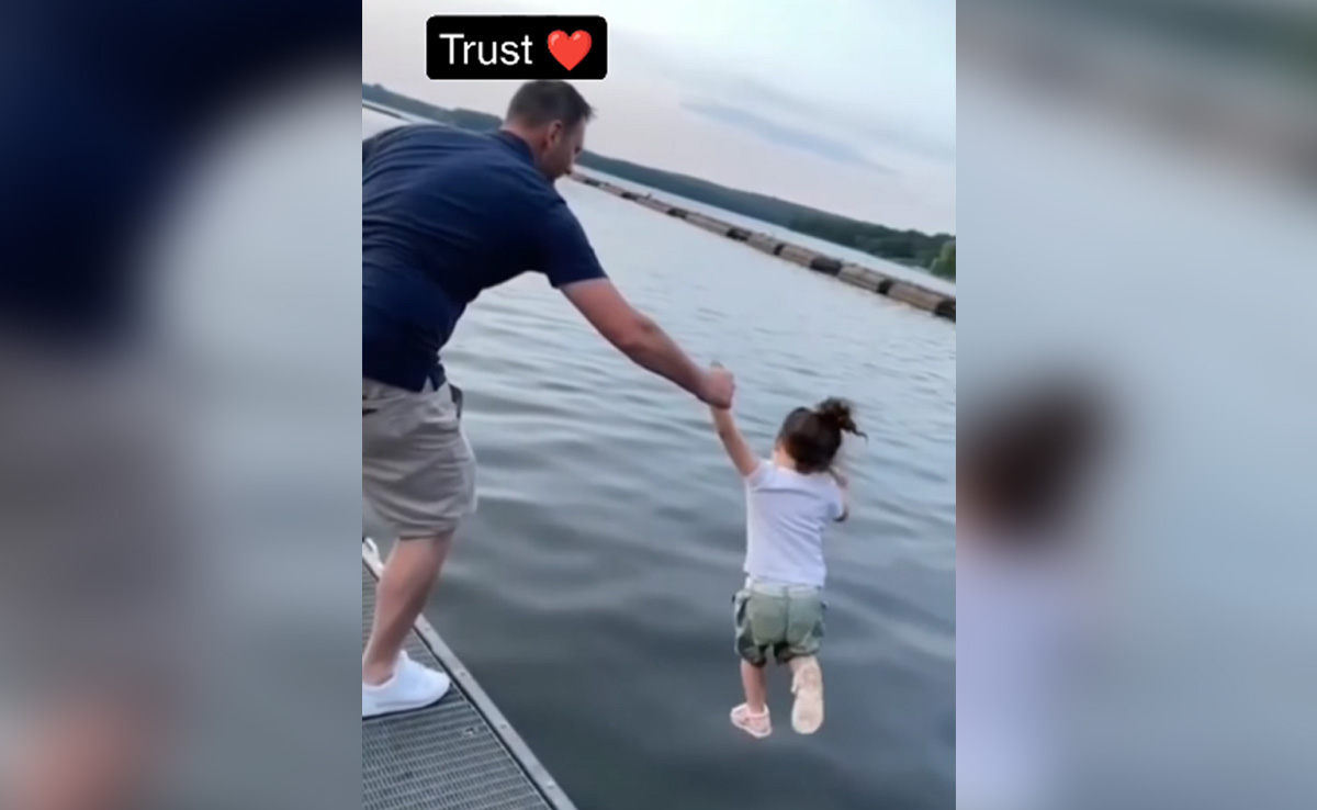 बेटियां पापा की परियां होती हैं, ये जुमला तो आम हो चुका है. बेटियां अपने पापा पर किस कदर यकीन करती हैं, ये जाहिर करता एक वीडियो अब सोशल मीडिया पर वायरल हो रहा है. इस वीडियो को देखकर शायद आपकी सांसे थम सकती हैं. क्योंकि सामने गहरा पानी नजर आ रहा है और एक पिता अपनी नन्हीं सी बेटी का हाथ थाम कर उसे छलांग लगवाते नजर आएंगे. इस वीडियो की शुरुआत दहलाती है लेकिन इसका अंत आपको मुस्कुराने पर मजबूर कर देगा.