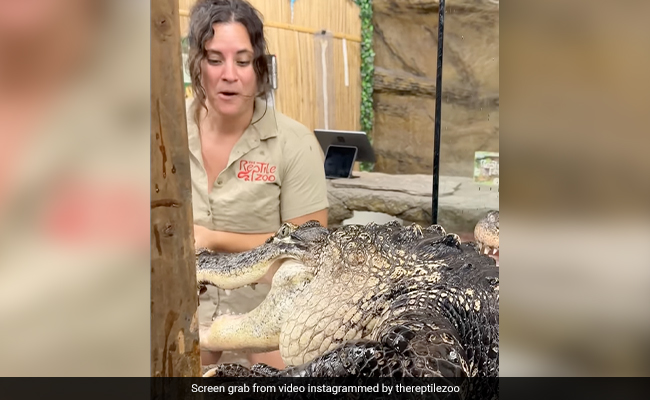द रेप्टाइल जू में काम करने वाली महिला को सरीसृपों को संभालने का वर्षों का अनुभव है और जब गेटर्स ने उस पर हमला किया तो वह जरा भी नहीं घबराई. वीडियो के साथ कैप्शन में लिखा है, "डार्थ गेटोर खाना चाहते हैं."