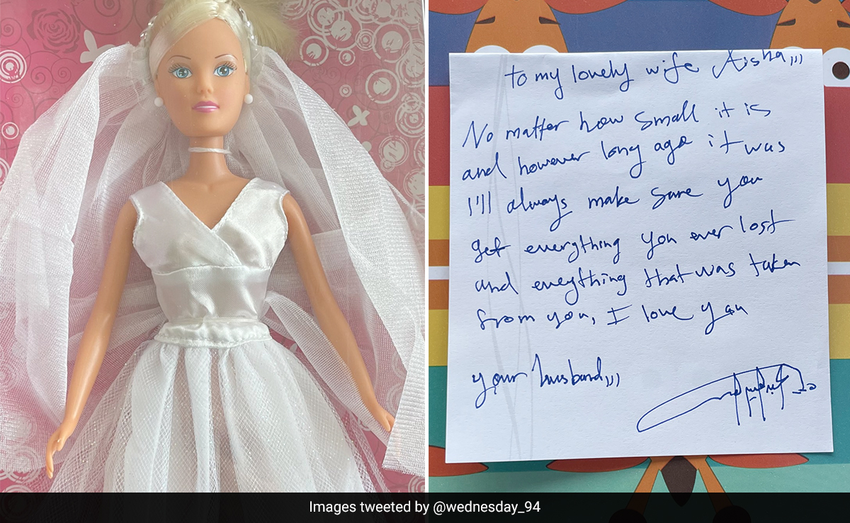 महिला ने बार्बी की तस्वीर के साथ जो नोट शेयर किया, उसमें लिखा है, 'मेरी प्यारी वाइफ आयशा के लिए,..चाहे यह कितना भी छोटा क्यों न हो और चाहे यह कितना भी पुराना हो, मैं हमेशा यह सुनिश्चित करूंगा कि आपको वह सब कुछ मिले, जो आपने कभी खोया है और वह सब कुछ जो आपसे लिया गया है, आई लव यू-तुम्हारा पति.'
